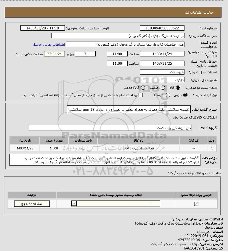 استعلام کیسه ساکشن یکبار مصرف به همراه تجهیزات نصب و راه اندازی 18 unn ساکشن, استعلام کیسه ساکشن یکبار مصرف به همراه تجهیزات نصب و راه اندازی 18 unn ساکشن