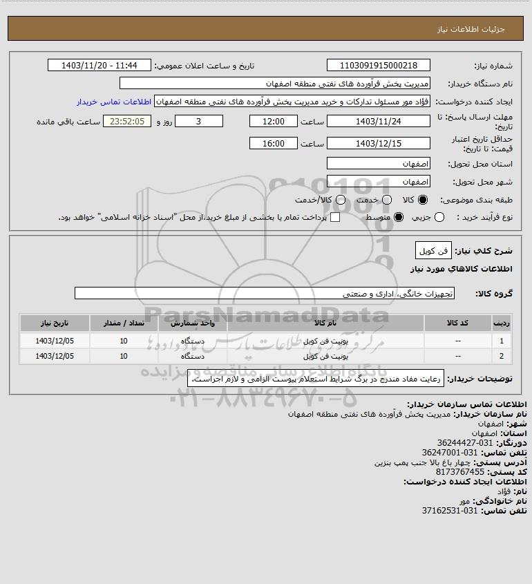 نام دستگاه خریدار:مدیریت پخش فرآورده های نفتی منطقه اصفهان