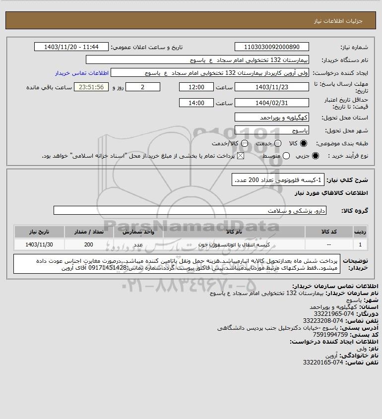 نام دستگاه خریدار:بیمارستان 132 تختخوابی امام سجاد ع یاسوج