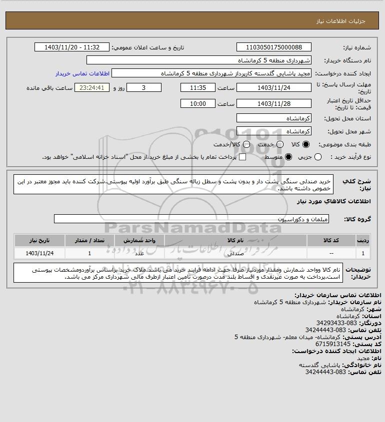 نام دستگاه خریدار:شهرداری منطقه 5 کرمانشاه