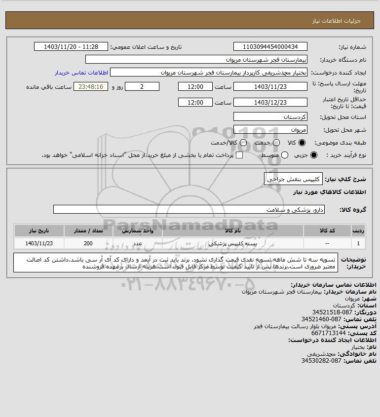 | 1 | -- | بسته کلیپس پزشکی | عدد | 200 | 1403/11/23 |