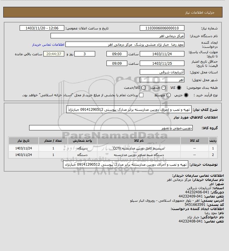 توضیحات خریدار:تهیه و نصب و اجرای دوربین مداربسته برابر مدارک پیوستی 09141290512 جبارنژاد