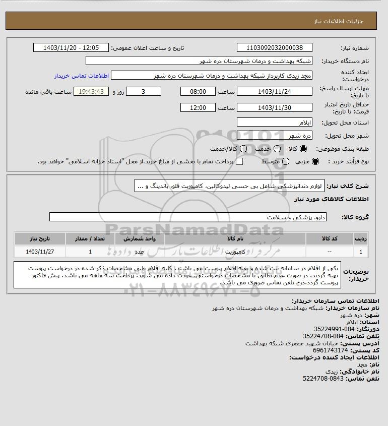 استعلام لوازم دندانپزشکی شامل بی حسی لیدوکائین کامپوزیت فلو باندینگ و ..., استعلام لوازم دندانپزشکی شامل بی حسی لیدوکائین، کامپوزیت فلو، باندینگ و ...
