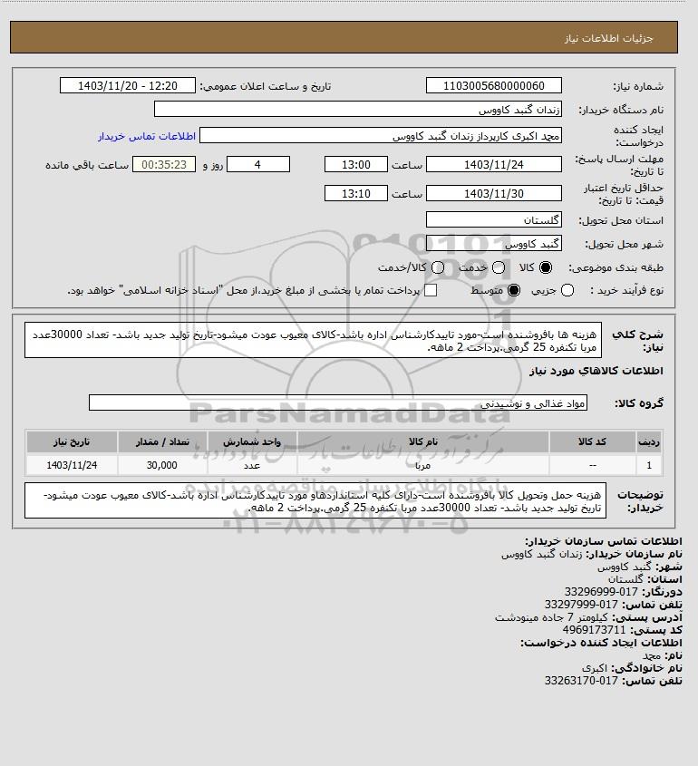 نام سازمان خریدار: زندان گنبد کاووس