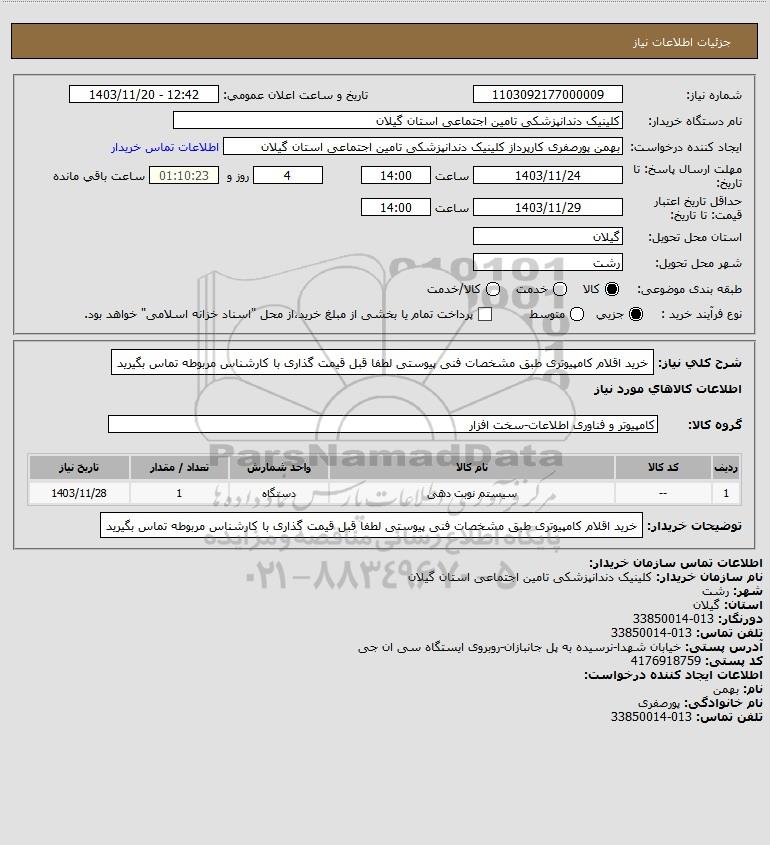 نام دستگاه خریدار:کلینیک دندانپزشکی تامین اجتماعی استان گیلان