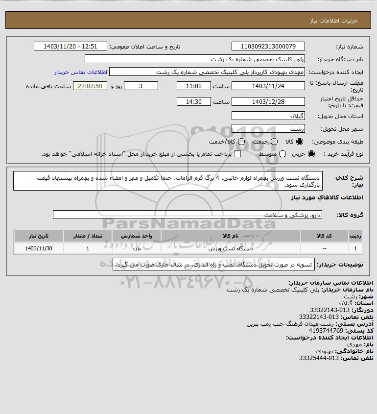 نام دستگاه خریدار:پلی کلینیک تخصصی شماره یک رشت