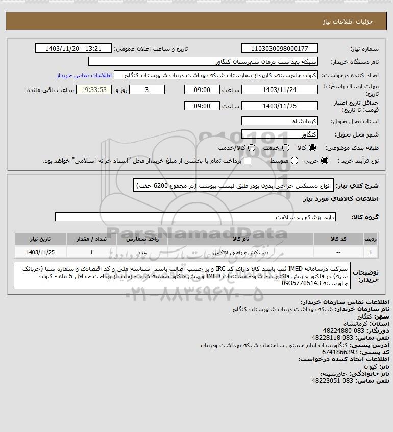 نام دستگاه خریدار:شبکه بهداشت درمان شهرستان کنگاور
