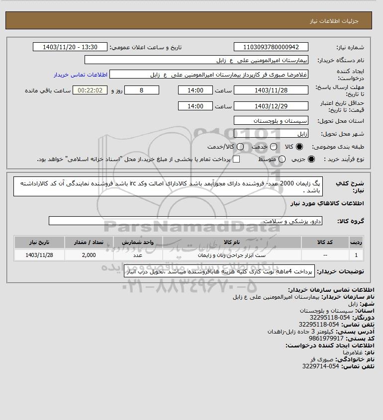 نام دستگاه خریدار:بیمارستان امیرالمومنین علی ع زابل