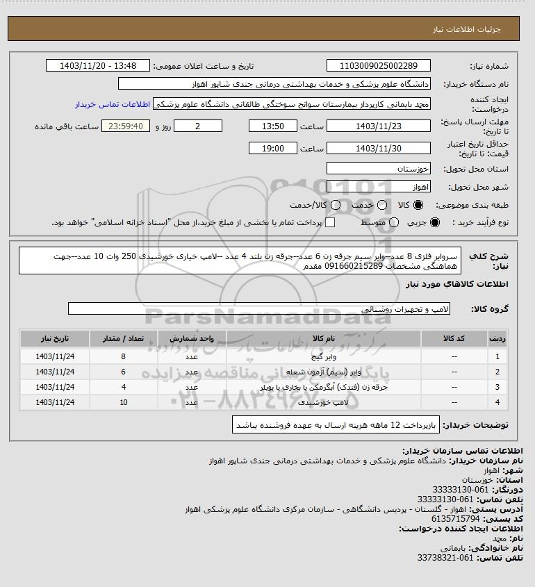 | 4 | -- | لامپ خورشیدی | عدد | 10 | 1403/11/24 |