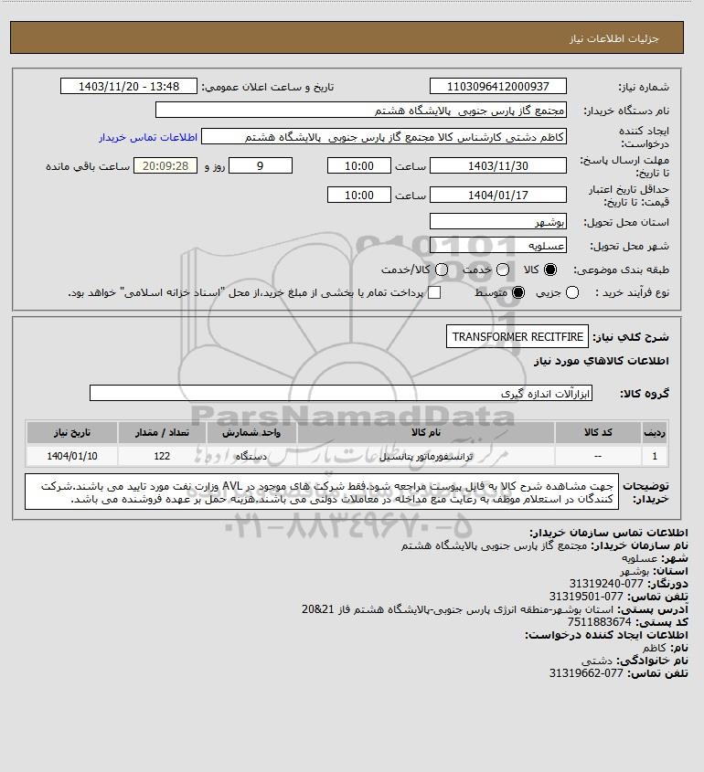 شرح کلی نیاز: TRANSFORMER RECITFIRE
