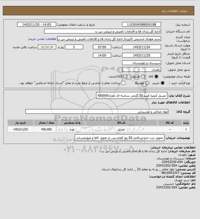 نام دستگاه خریدار:اداره کل زندان ها و اقدامات تامینی و تربیتی س ب