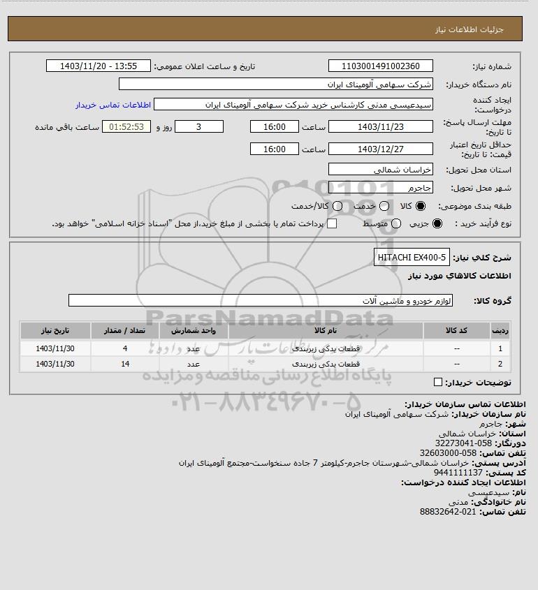 نام دستگاه خریدار:شرکت سهامی آلومینای ایران