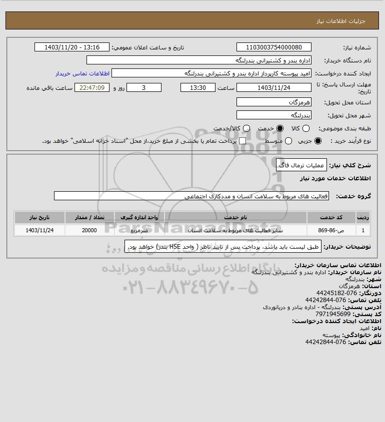 توضیحات خریدار:طبق لیست باید باشد، پرداخت پس از تایید ناظر ( واحد HSE بندر) خواهد بود.