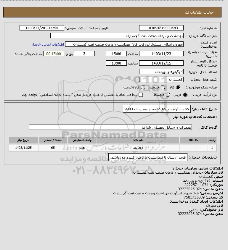 نام دستگاه خریدار:بهداشت و درمان صنعت نفت گچساران