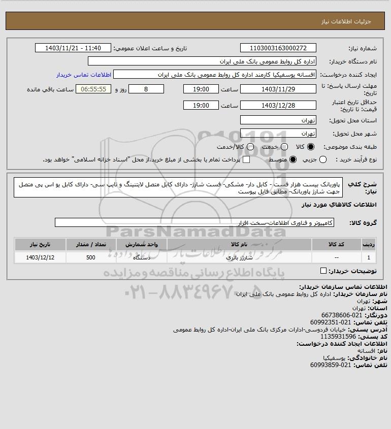 نام دستگاه خریدار:اداره کل روابط عمومی بانک ملی ایران
