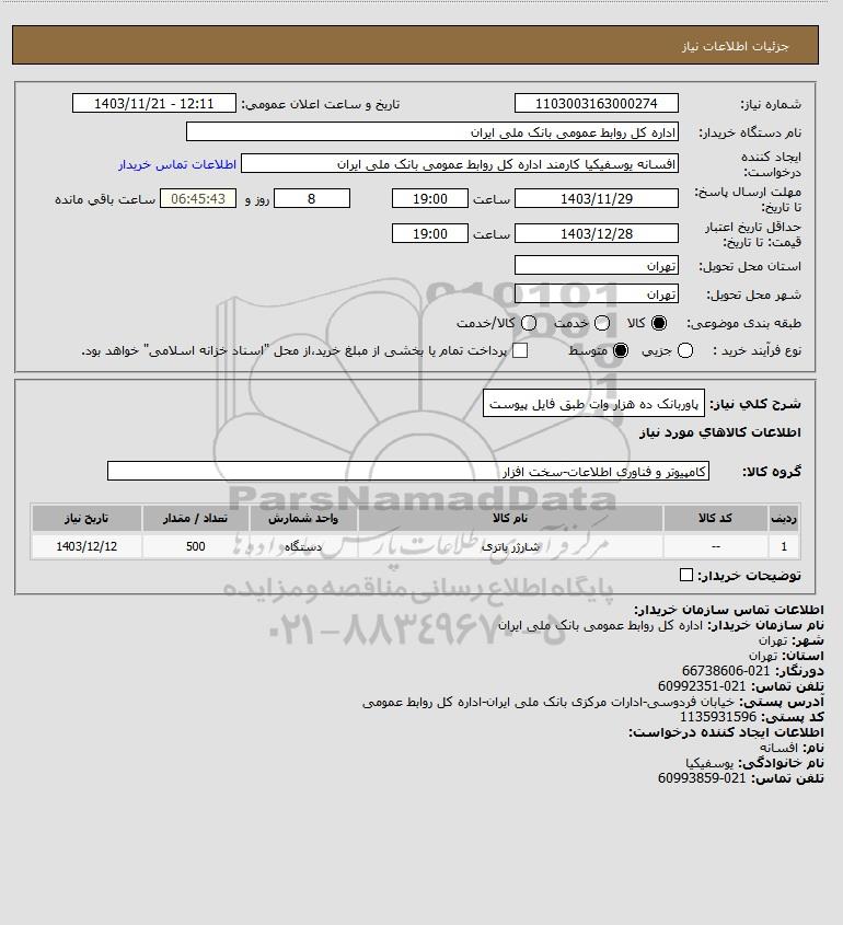استعلام پاوربانک ده هزار وات طبق فایل پیوست, استعلام پاوربانک ده هزار وات طبق فایل پیوست