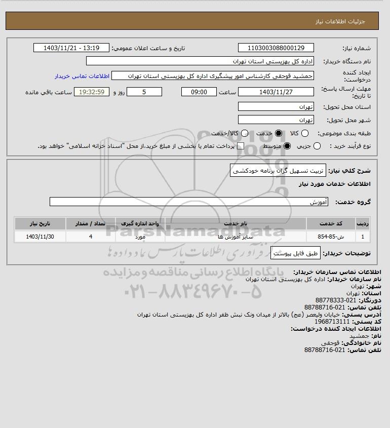 شرح کلی نیاز: تربیت تسهیل گران برنامه خودکشی