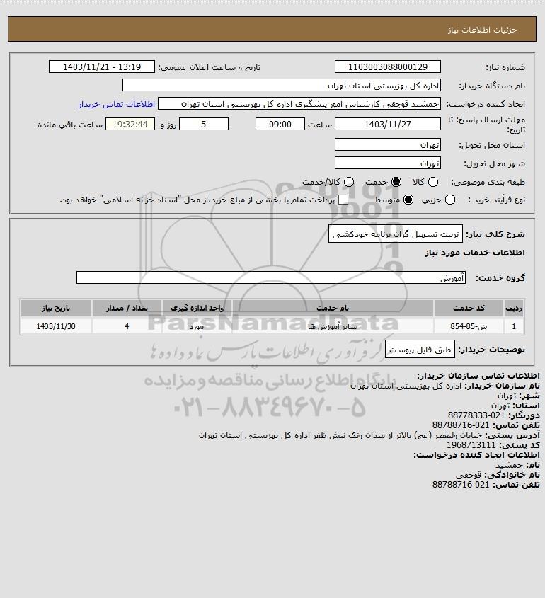 نام دستگاه خریدار:اداره کل بهزیستی استان تهران