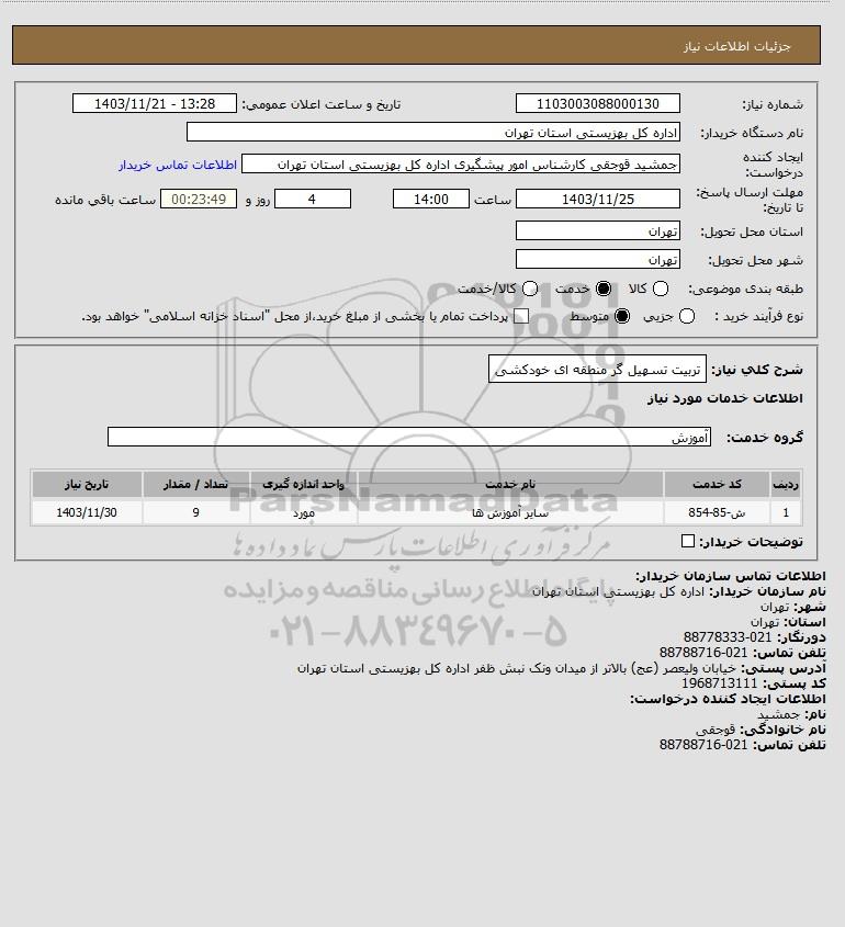 شرح کلی نیاز: تربیت تسهیل گر منطقه ای خودکشی