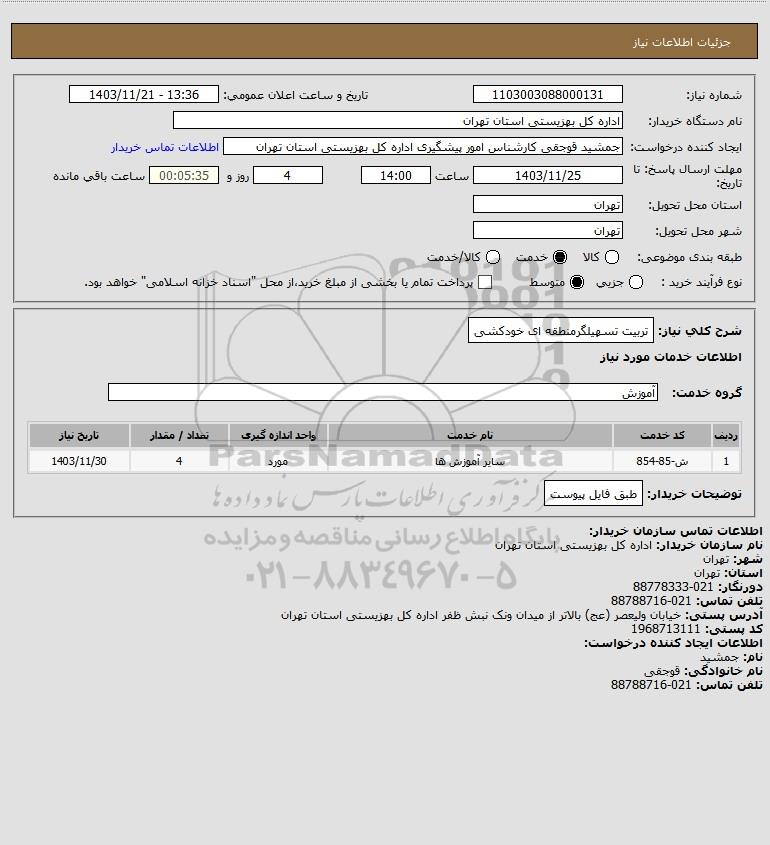 نام دستگاه خریدار:اداره کل بهزیستی استان تهران