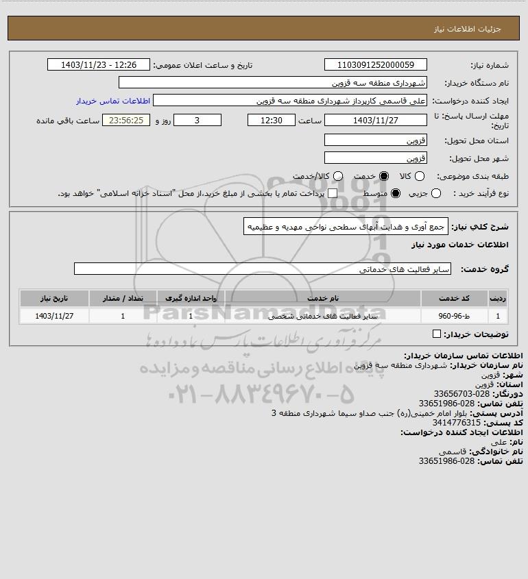 نام دستگاه خریدار:شهرداری منطقه سه قزوین