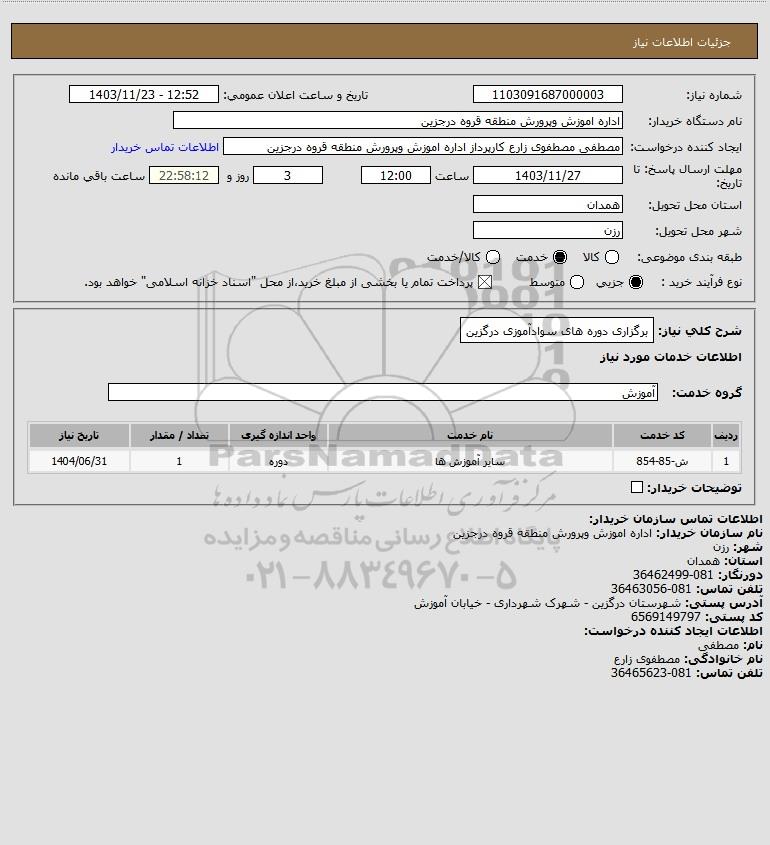 استعلام برگزاری دوره های سوادآموزی درگزین, استعلام برگزاری دوره های سوادآموزی درگزین