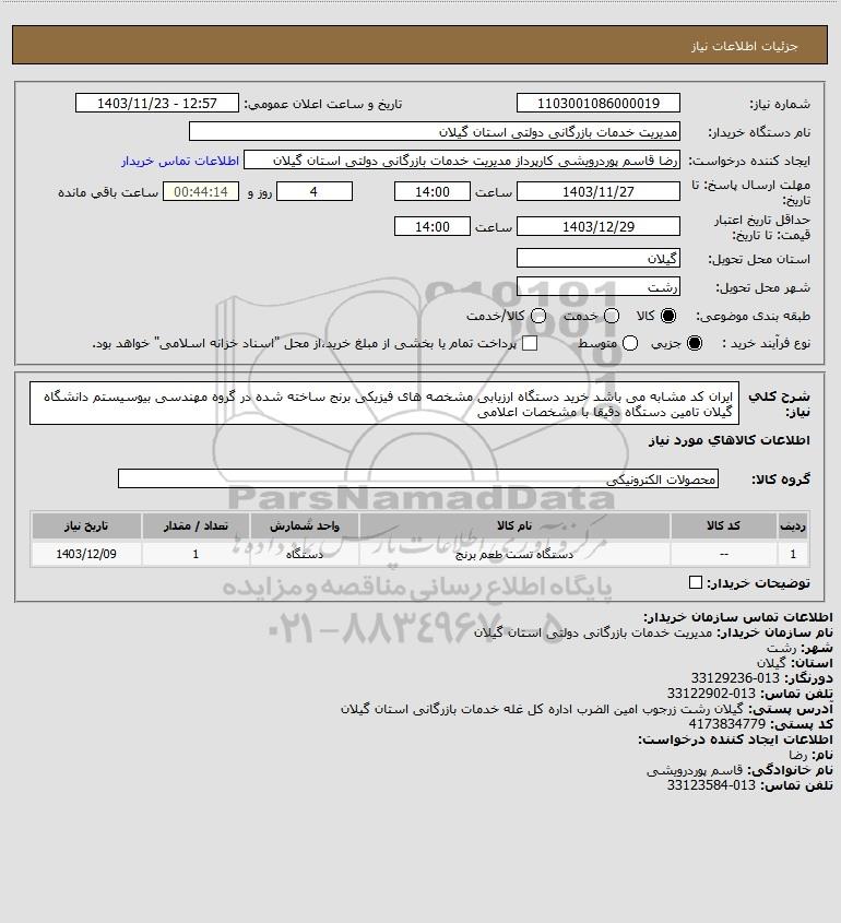 | 1 | -- | دستگاه تست طعم برنج | دستگاه | 1 | 1403/12/09 |