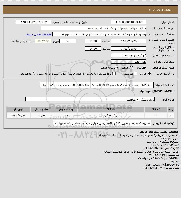 نام سازمان خریدار: معاونت بهداشت و مرکز بهداشت استان بویر احمد