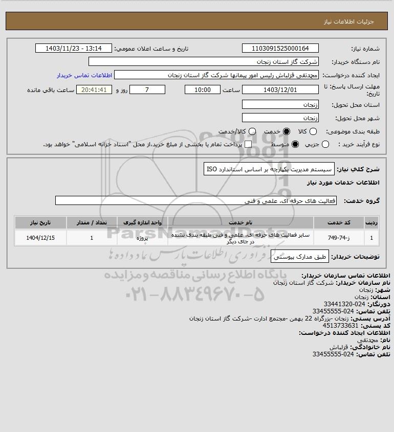 نام دستگاه خریدار:شرکت گاز استان زنجان