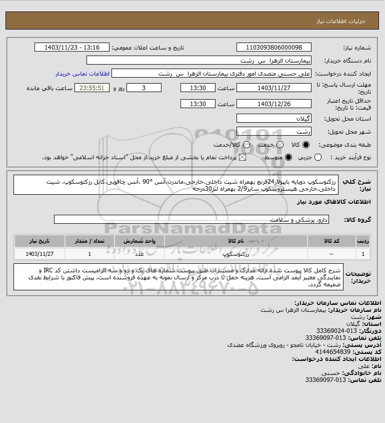 نام دستگاه خریدار:بیمارستان الزهرا س رشت