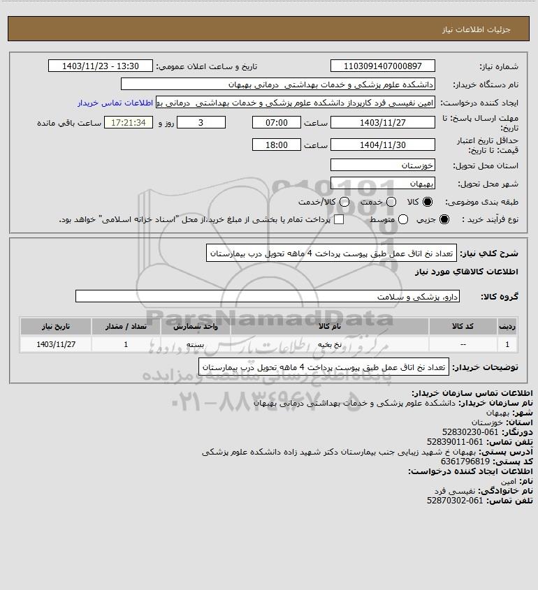 نام دستگاه خریدار:دانشکده علوم پزشکی و خدمات بهداشتی درمانی بهبهان
