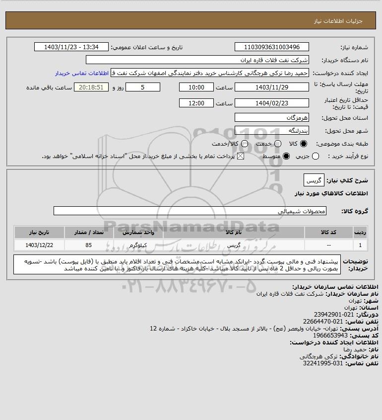 نام سازمان خریدار: شرکت نفت فلات قاره ایران