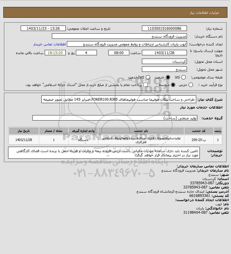 نام دستگاه خریدار:مدیریت فرودگاه سنندج