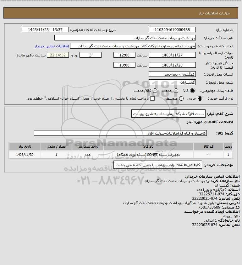 نام دستگاه خریدار:بهداشت و درمان صنعت نفت گچساران