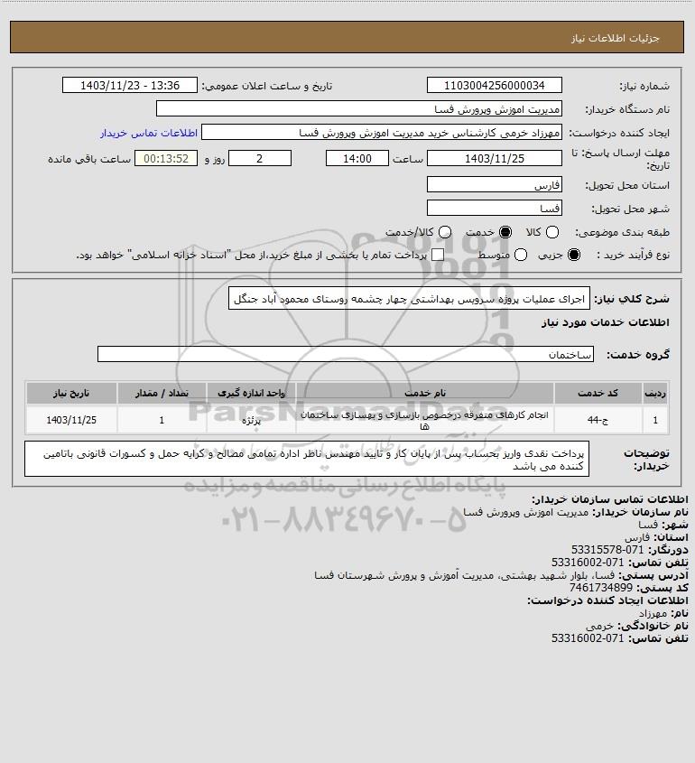 نام دستگاه خریدار:مدیریت اموزش وپرورش فسا