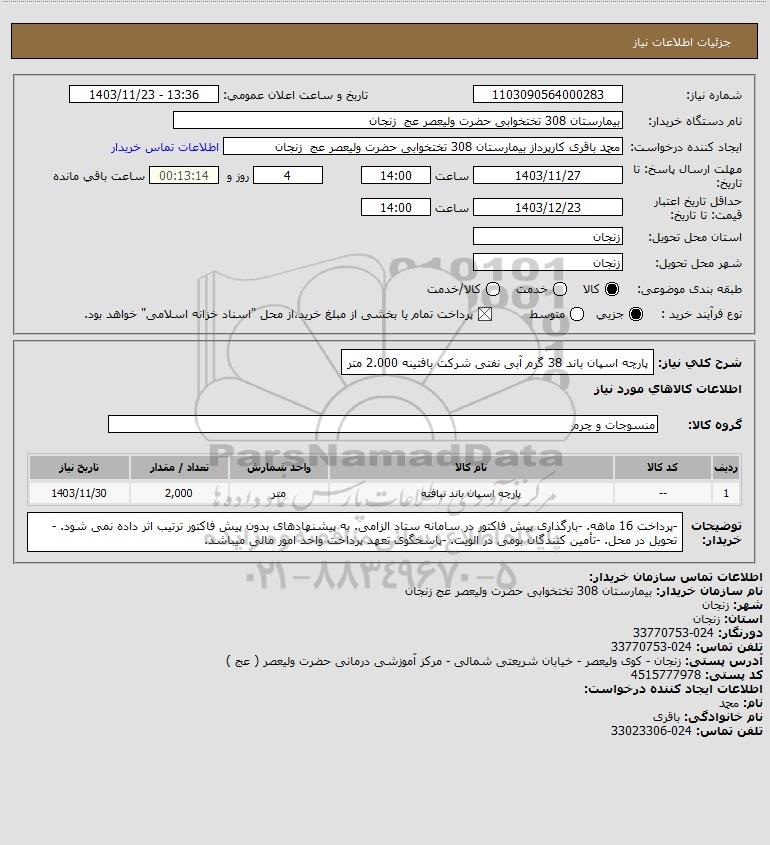| 1 | -- | پارچه اسپان باند نبافته | متر | 2,000 | 1403/11/30 |