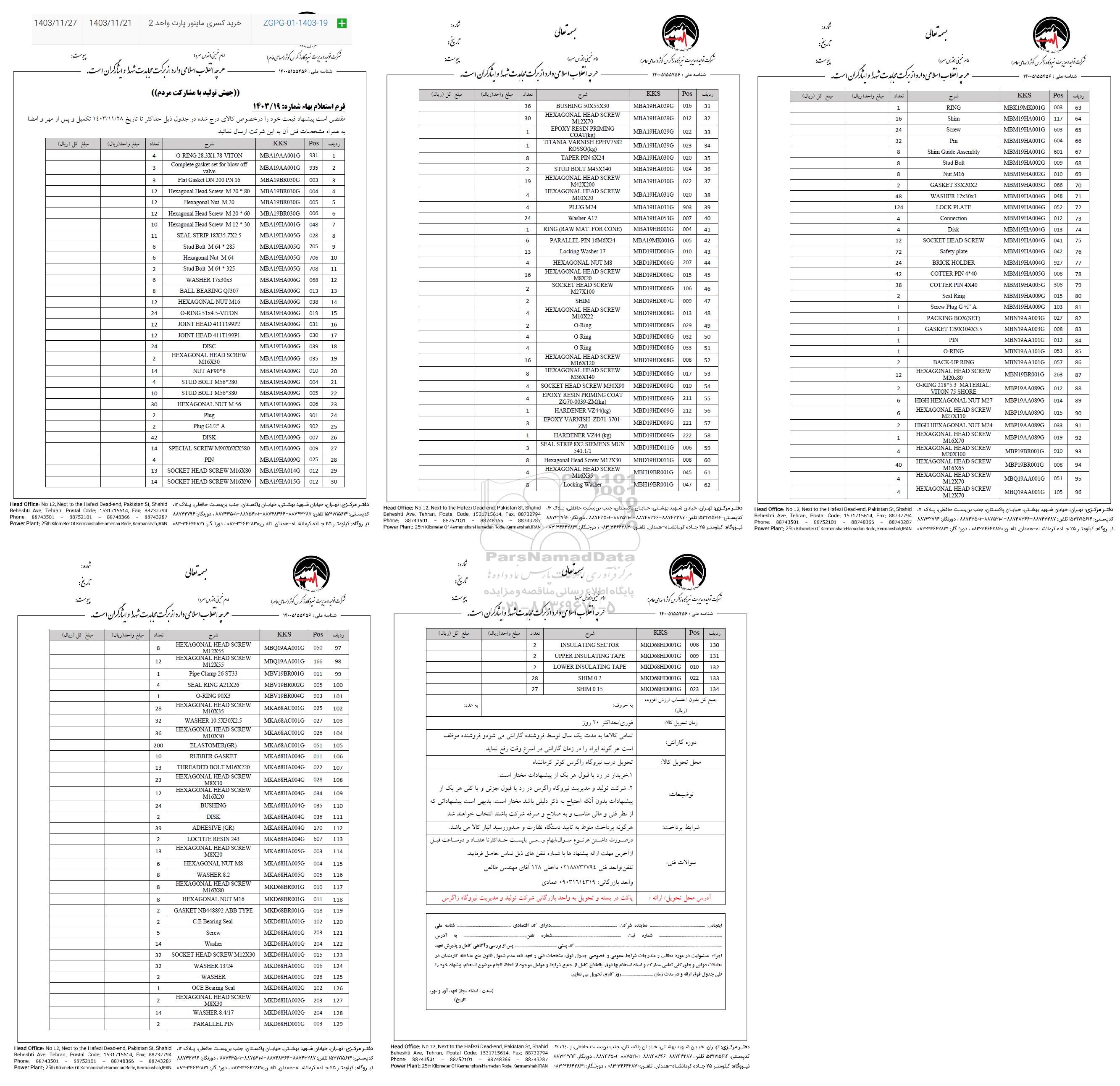 | ZGPG-01-1403-19 | خرید کسری ماینور پارت واحد 2 | 1403.11.21 | 1403.11.27 |