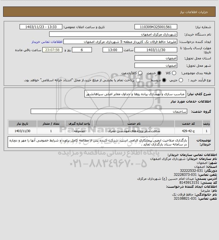 شرح کلی نیاز: مناسب سازی و بهسازی پیاده روها و جداول معابر اصلی سپاهانشهر
