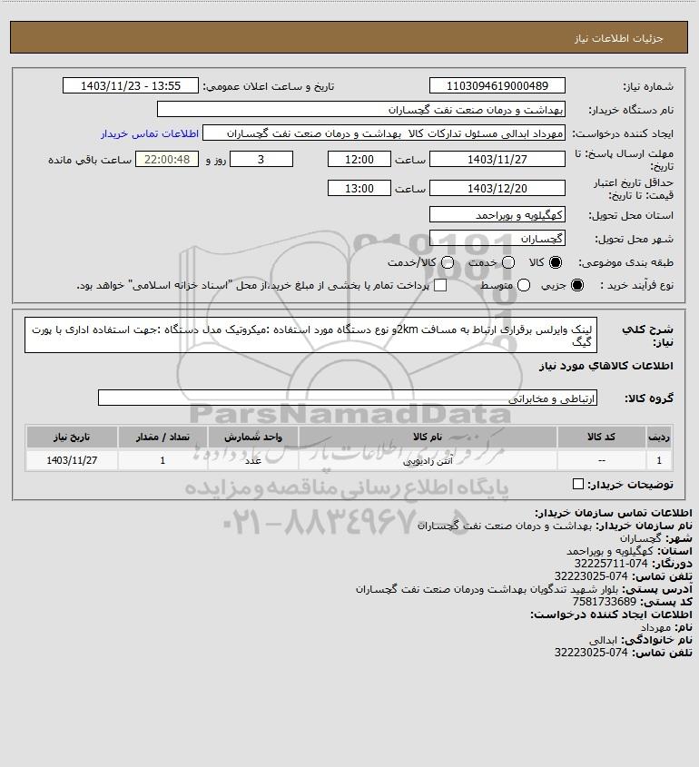 نام دستگاه خریدار:بهداشت و درمان صنعت نفت گچساران