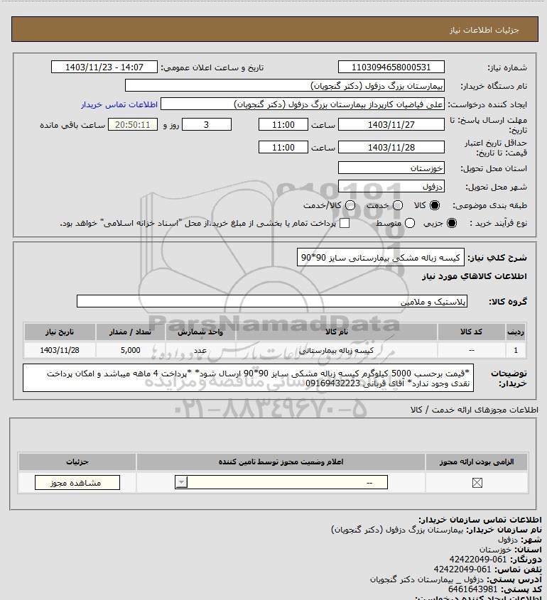 شرح کلی نیاز: کیسه زباله مشکی بیمارستانی سایز 90*90
