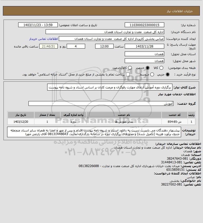 نام دستگاه خریدار:اداره کل صنعت معدن و تجارت استان همدان