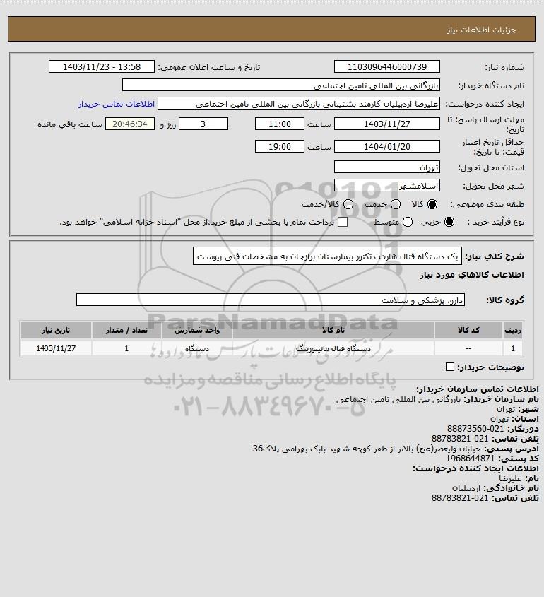 | 1 | -- | دستگاه فتال مانیتورینگ | دستگاه | 1 | 1403/11/27 |