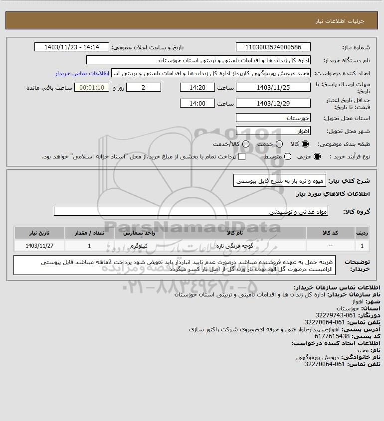 استعلام میوه و تره بار به شرح فایل پیوستی, استعلام میوه و تره بار به شرح فایل پیوستی