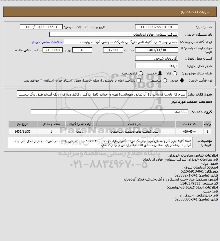 نام دستگاه خریدار:شرکت سهامی فولاد اذربایجان