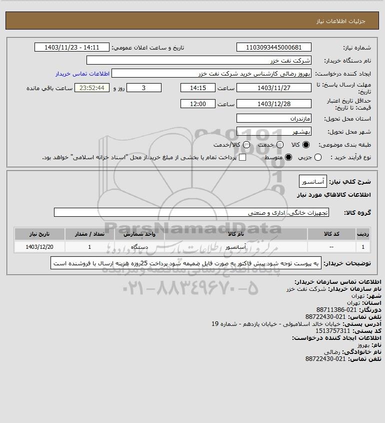 نام دستگاه خریدار:شرکت نفت خزر