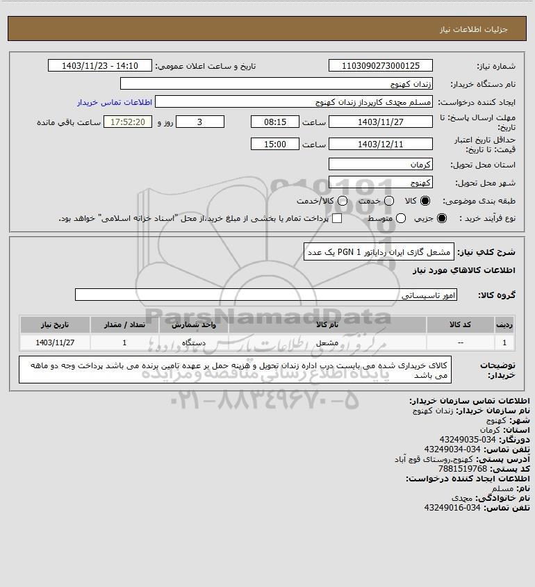 شرح کلی نیاز: مشعل گازی ایران ردایاتور PGN 1 یک عدد