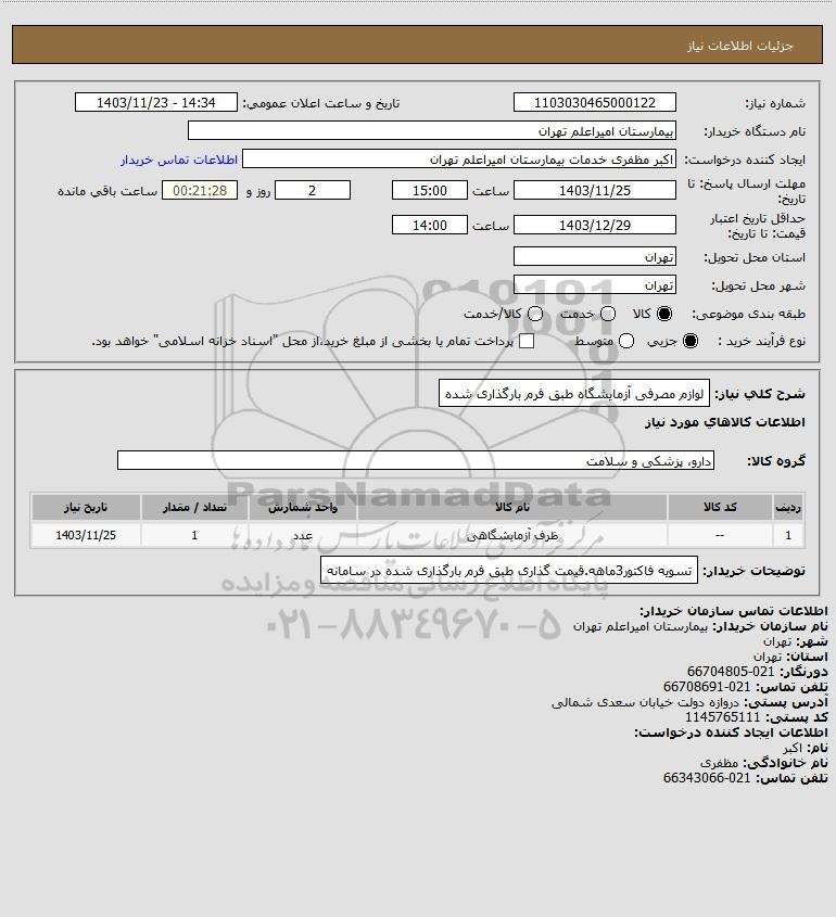 نام دستگاه خریدار:بیمارستان امیراعلم تهران