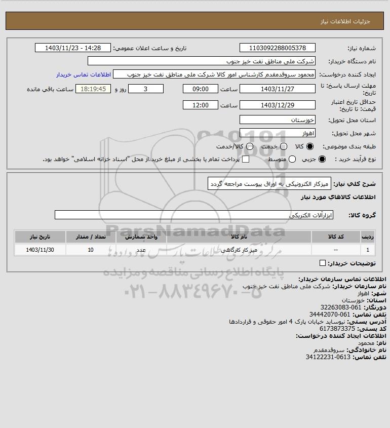 نام دستگاه خریدار:شرکت ملی مناطق نفت خیز جنوب