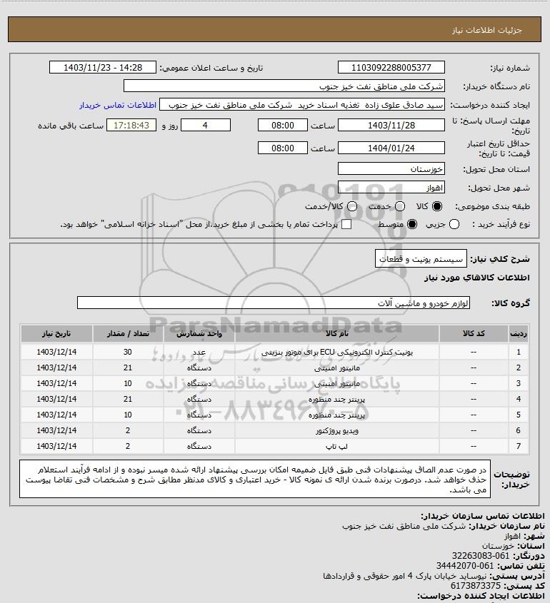 نام دستگاه خریدار:شرکت ملی مناطق نفت خیز جنوب