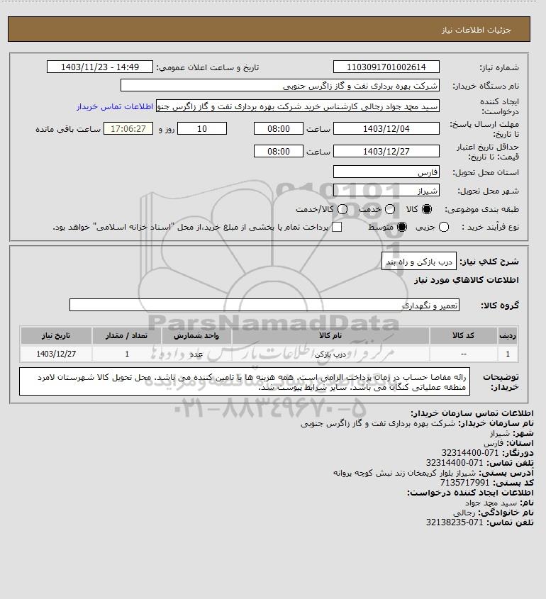 شرح کلی نیاز: درب بازکن و راه بند